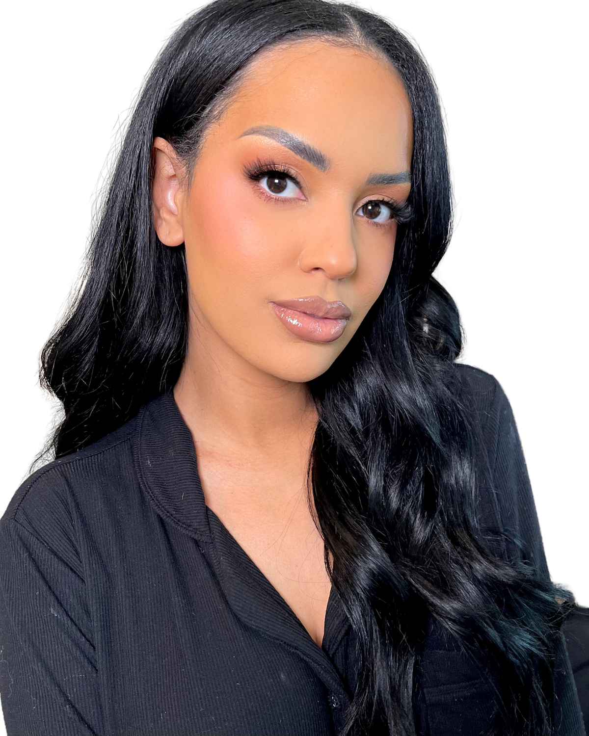 Full glam is a bold, polished makeup look that highlights your features. It includes a flawless complexion, defined eyes with eyeshadow and lashes. This look is perfect for making a statement at special events or nights out.
